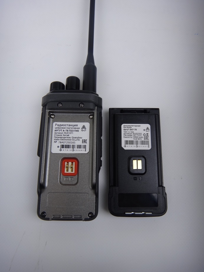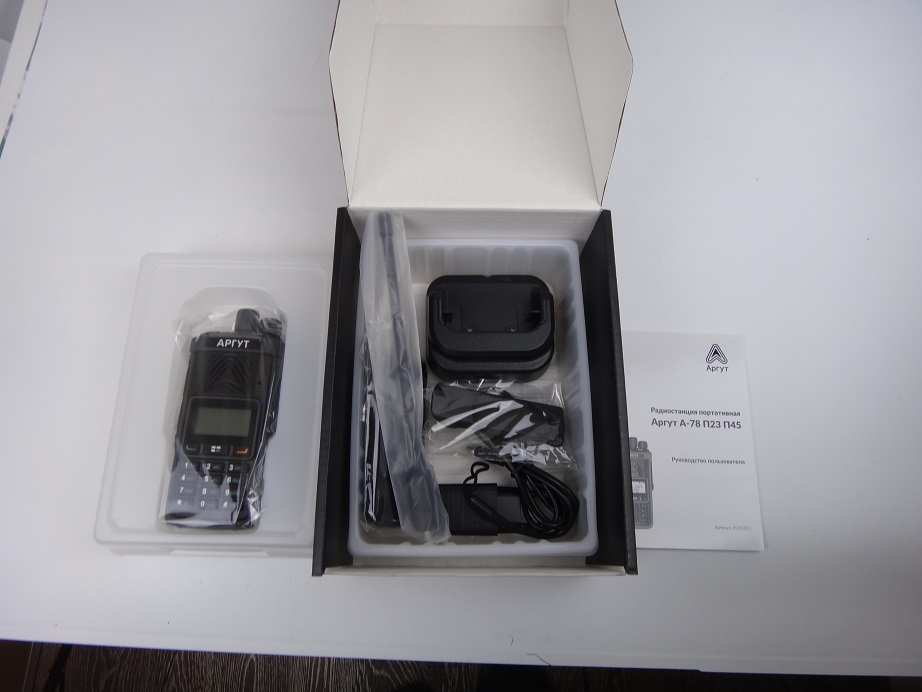 Аргут А-78 — 4-х диапазонная цифровая DMR радиостанция, рабочие диапазоны: 118.000-136.975, 146-174, 300-336 и 400-470 МГц. 1024 канала, дисплей с подсветкой, клавиатура, FM-приемник, кабель питания Type-C.