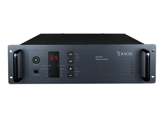Цифро-аналоговый ретранслятор Racio RD3000 предназначен для увеличения уверенной зоны покрытия портативных и автомобильных радиостанций, работающих в VHF (136-174 МГц) диапазоне.
